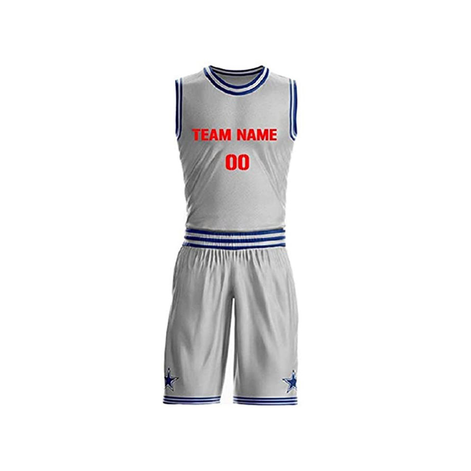ชุดบาสเก็ตบอลผู้ชายแบบ OEM สั่งทำพิเศษ เนื้อผ้าตาข่ายระบายอากาศ โลโก้สั่งทำได้ แขนสั้น ไซส์ใหญ่ ชุดป้องกันแบคทีเรีย
