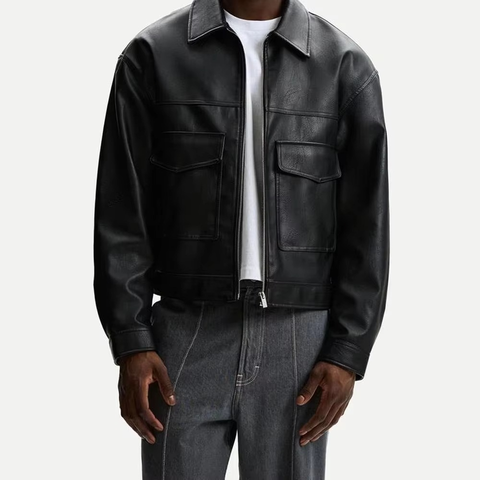 แจ็คเก็ตบอมเบอร์หนัง PU ทรงบ็อกซี่ สไตล์ลำลอง สำหรับผู้ชาย ผลิตตามสั่ง (OEM) ใส่สบาย ทันสมัย เป็นมิตรกับสิ่งแวดล้อม ระบายอากาศได้ดี เหมาะสำหรับฤดูหนาว คุณภาพสูง กันลม