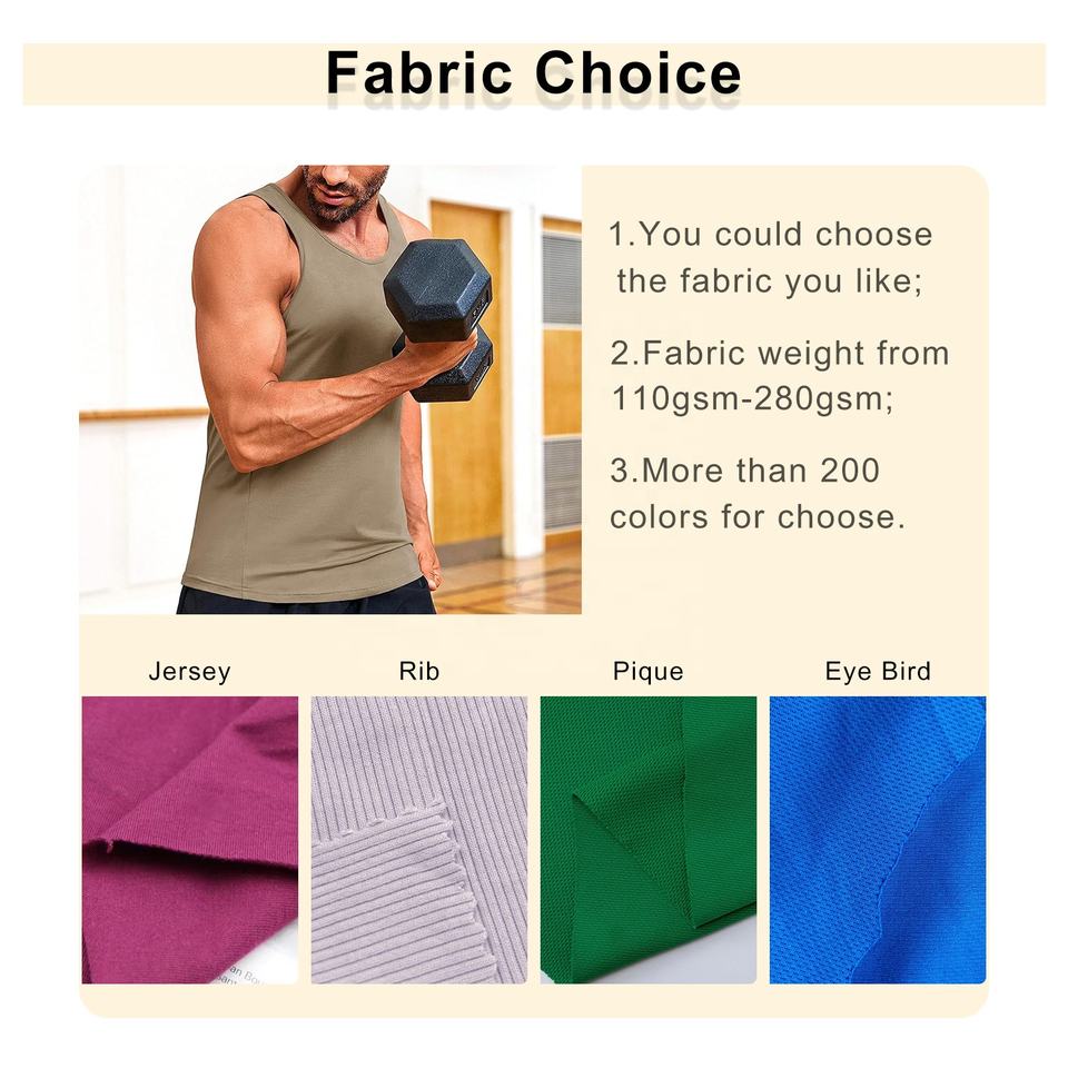 เสื้อกล้ามสำหรับยิมของผู้ชายเสื้อถัก5% คอตตอนคอมบ์95% สีทึบผ้าสแปนเด็กซ์ออกแบบได้ตามต้องการ