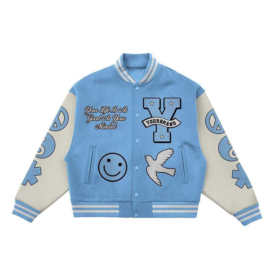 แจ็คเก็ตบอมเบอร์สไตล์ฮิปฮอปสำหรับผู้ชายแบบ OEM ผ้าแคนวาส คอตั้ง ปักโลโก้ด้านหน้า ระบายอากาศได้ดี เหมาะสำหรับนักเรียนในฤดูหนาว