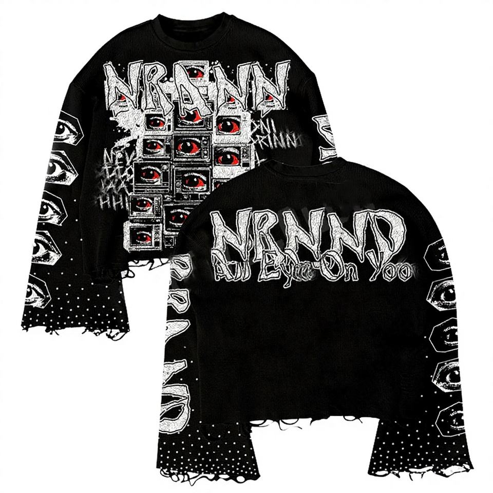 OEM Custom Men's Hip Hop Terry Front Blank Design Heavyweight 100% Cotton Eco-Friendly Loose Fit Long Sleeve T-Shirts