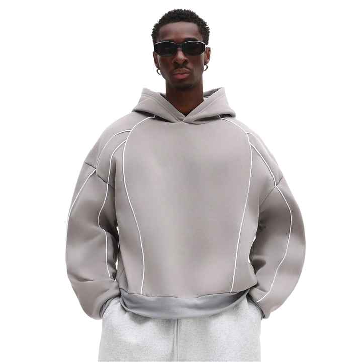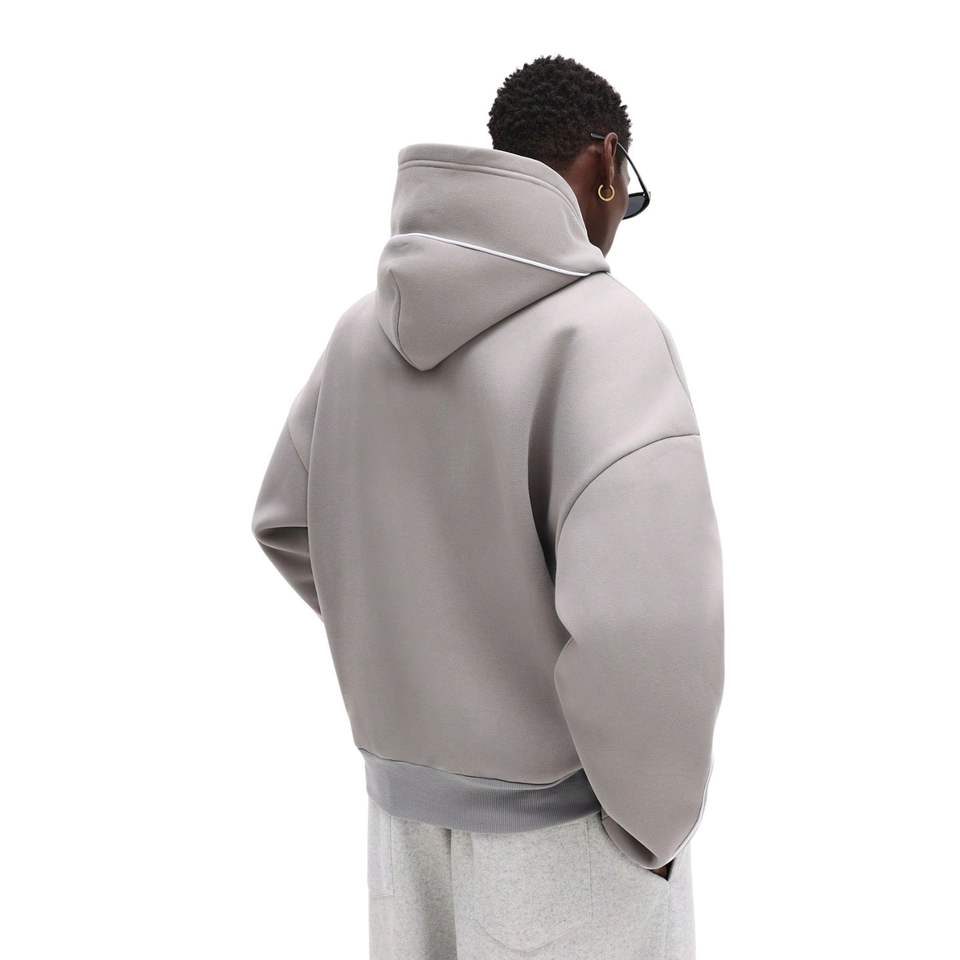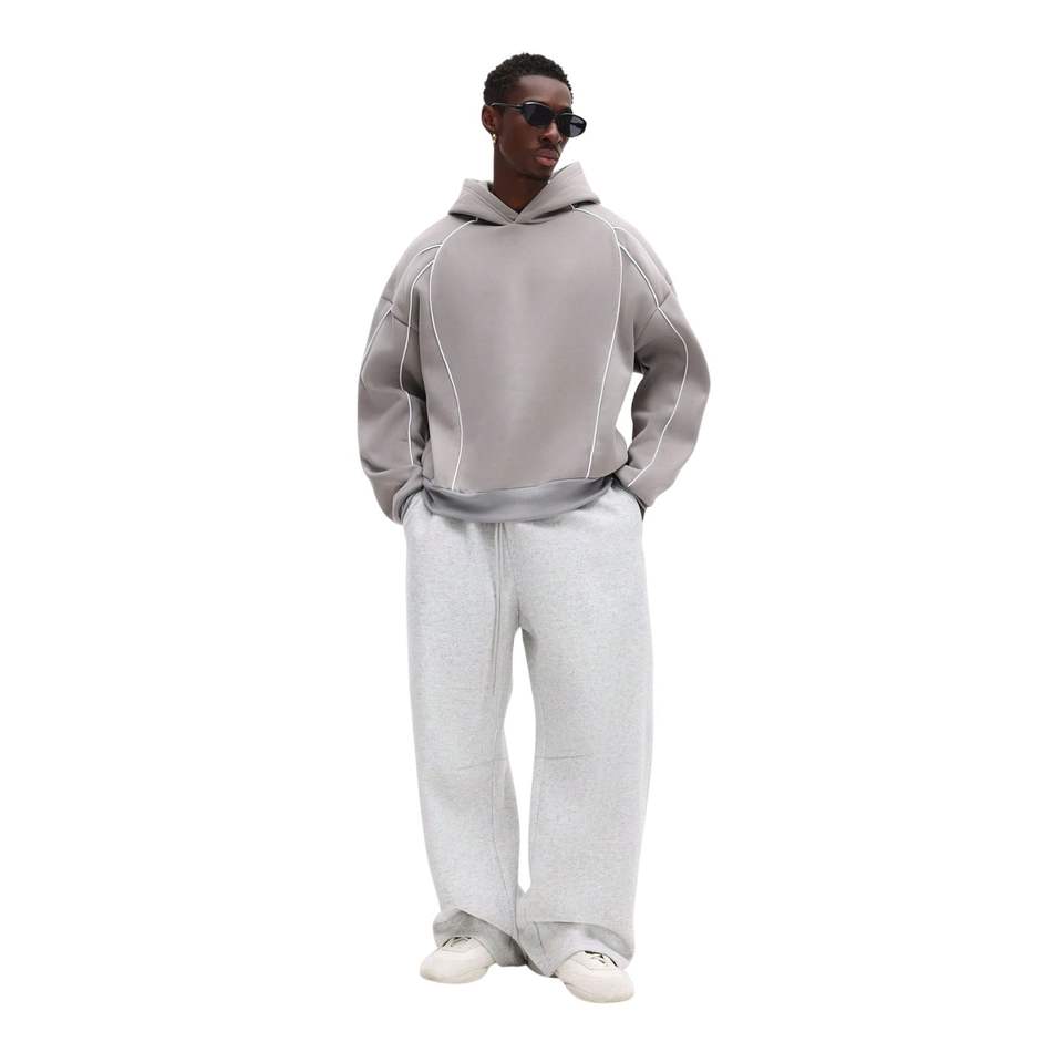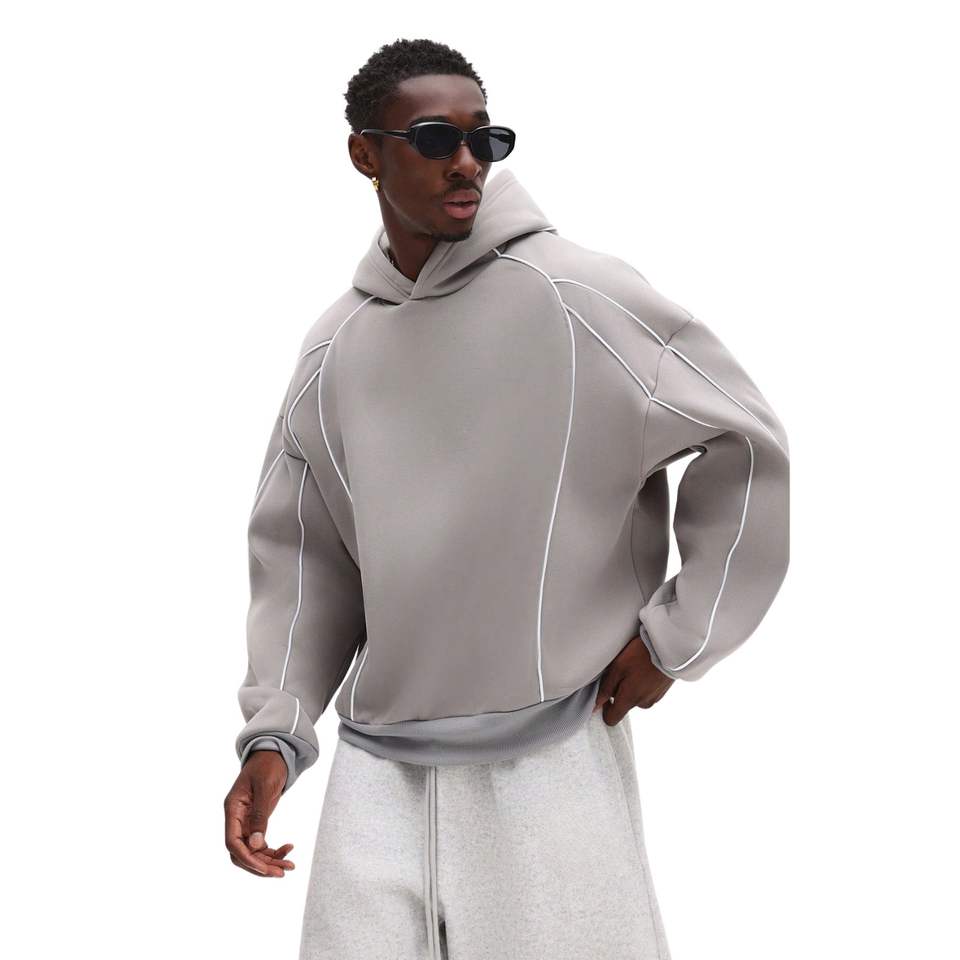 เสื้อฮู้ดดี้ผู้ชายแบบโอเวอร์ไซส์ OEM สั่งทำพิเศษ แต่งขอบตัดสี ผ้าฟลีซ 280 กรัม ปักโลโก้ได้ตามต้องการ ตะเข็บกลับด้าน แขนเสื้อแบบริบ สำหรับฤดูหนาว