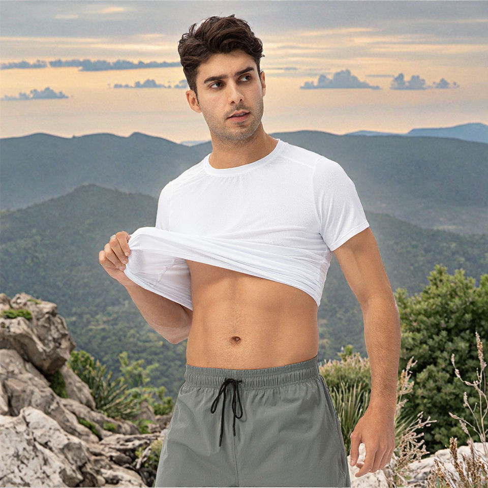 เสื้อยืดกีฬาผู้ชายแบบแห้งเร็ว OEM ผลิตตามสั่ง ระบายอากาศได้ดี น้ำหนักเบา เสื้อออกกำลังกายแขนสั้น สีพื้น สำหรับฤดูร้อน วิ่ง ฟิตเนส