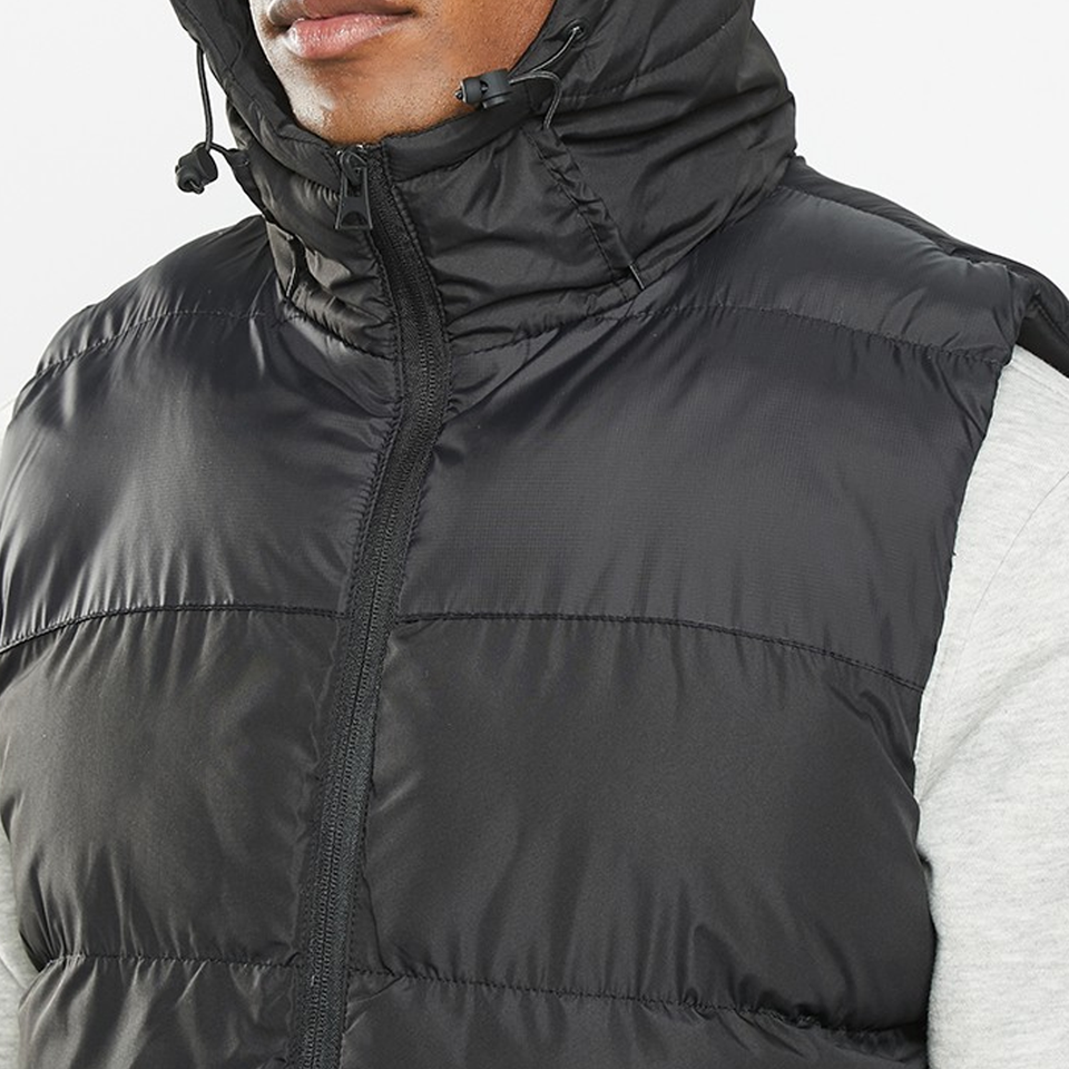 เสื้อแขนกุดผ้าไนลอนบุนวมสำหรับผู้ชายเสื้อแจ็กเก็ตแขนกุดสำหรับใส่กลางแจ้งมีโลโก้พิมพ์โลโก้
