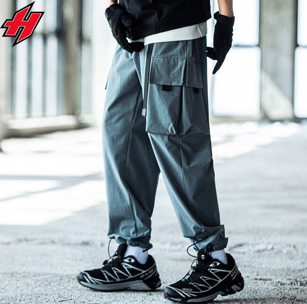 กางเกงวิ่งผ้าไนลอนของผู้ชายกางเกงวอร์มทรงขากว้างน้ำหนักเบาสะท้อนแสงขนาดใหญ่ออกแบบได้ตามต้องการ