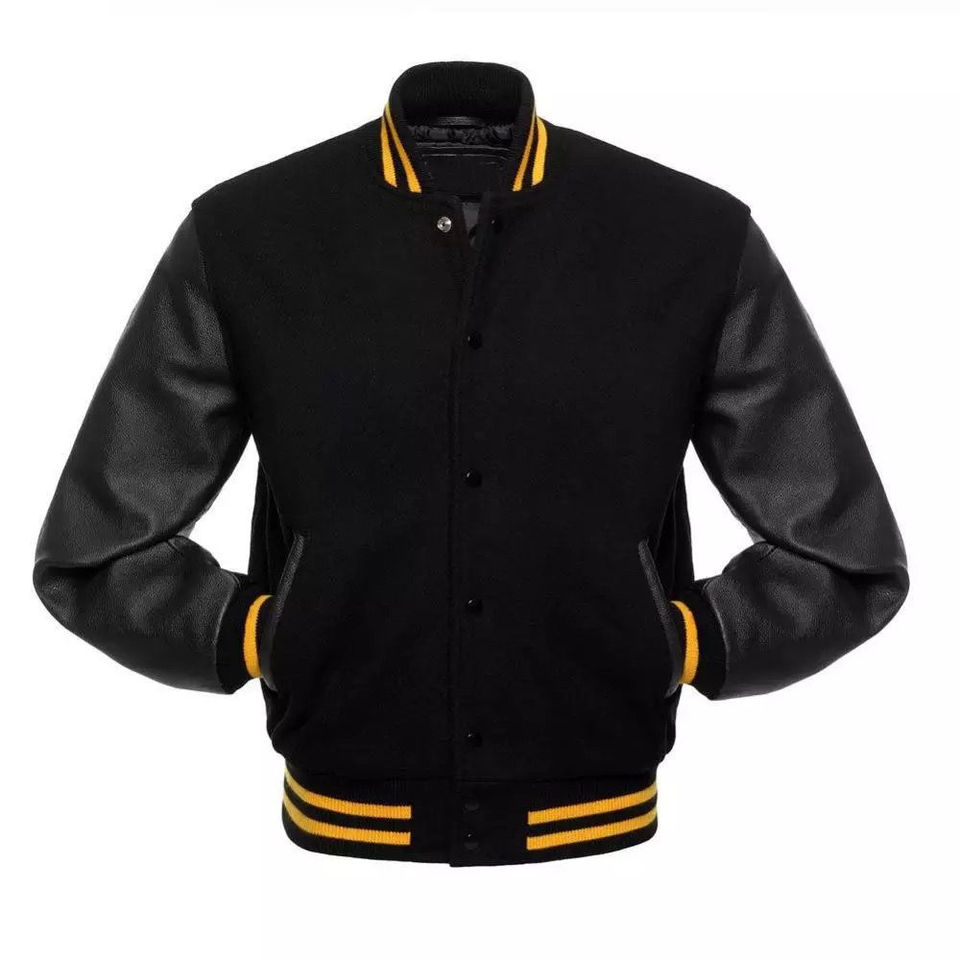แจ็คเก็ตวาร์ซิตี้แบบวินเทจสำหรับผู้ชาย OEM แบบกำหนดเอง คุณภาพสูง สไตล์เบสบอล ทีมบอมเบอร์ ปักลายเชนิลล์ แขนหนัง