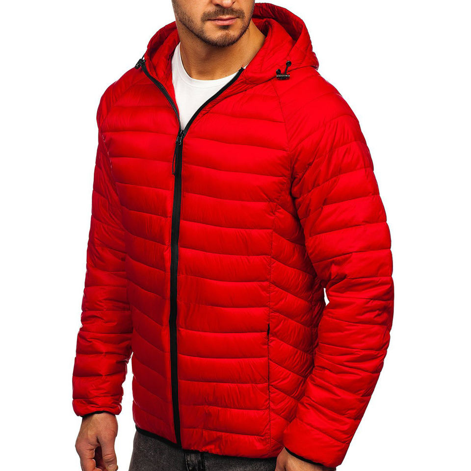 OEM Custom Men's Winter Quilted Hooded Jacket Warm Windproof Breathable Eco-Friendly Casual Style Stand Collar Lightweight Plus