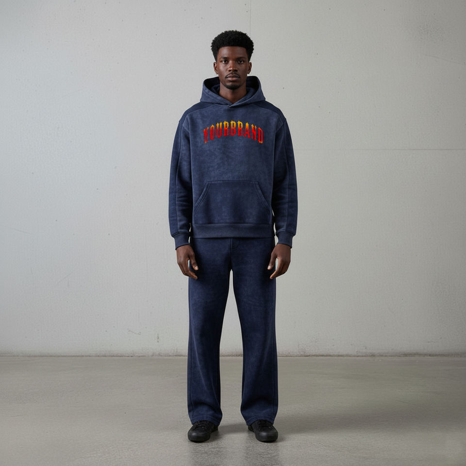 ชุดวอร์มสตรีทแวร์ผู้ชายสำหรับฤดูหนาวแบบ OEM สั่งทำพิเศษ พิมพ์โลโก้ตามแบบที่ต้องการ ผ้าโพลีเอสเตอร์/คอตตอน ขนฟลีซ ลายเรียบ ปี 2026