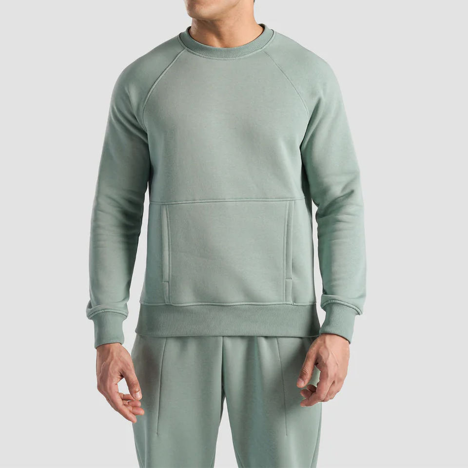 ชุดวอร์มเรียบง่ายของผู้ชายเสื้อสวมหัวผ้าโพลีเอสเตอร์ระบายอากาศได้น้ำหนักเบามีกระเป๋าและด้านล่างเป็นจิงโจ้ออกแบบได้ตามต้องการ