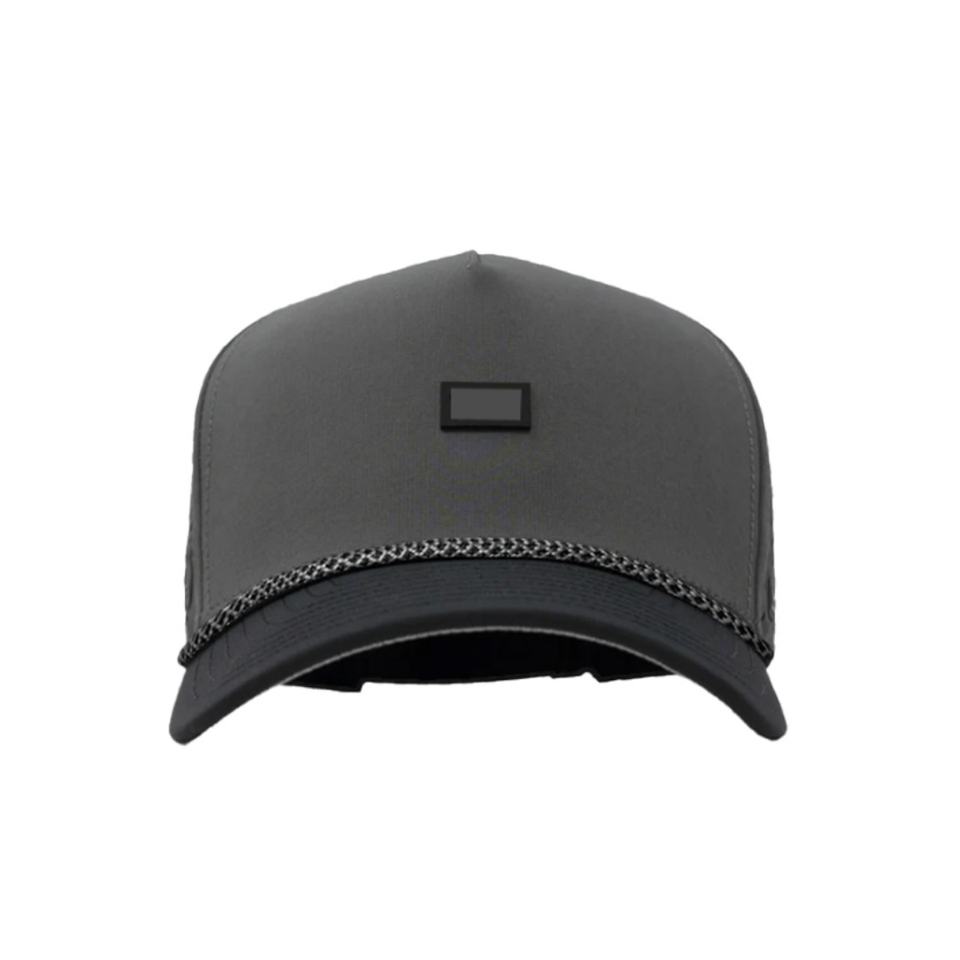หมวกแก๊ปตาข่ายแบบกำหนดเอง OEM พร้อมโลโก้ 5 แผง ปีกโค้งเล็กน้อย แบบ Snapback ป้ายยางกันน้ำ หมวกกอล์ฟ