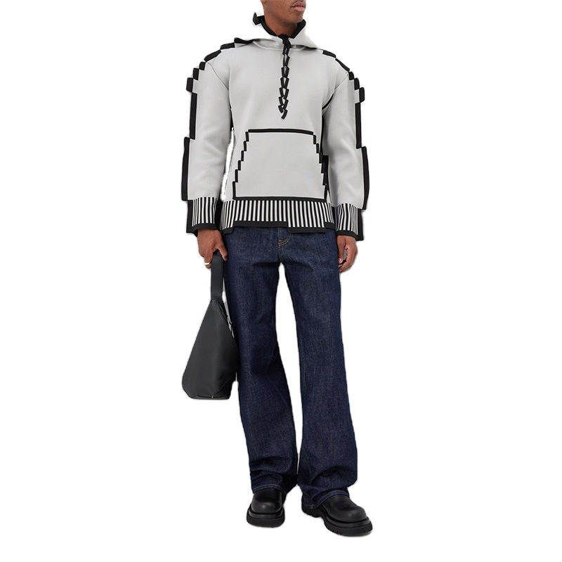 เสื้อฮู้ดแฟชั่นแบบแห้งเร็วระบายอากาศได้กำหนดเองสไตล์พิกเซลแบบถักนิตติ้งสำหรับผู้ชาย