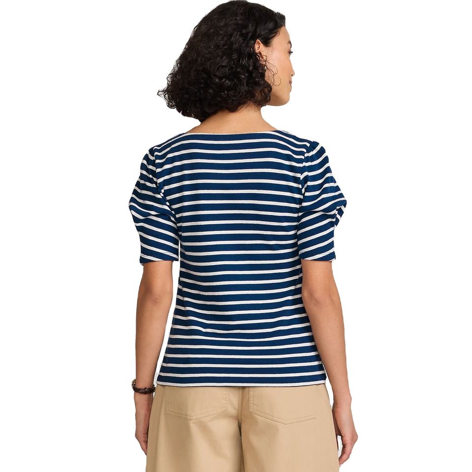 เสื้อยืดผู้หญิงแขนสั้นผ้าฝ้าย 100% รวบรวมคอลูกเรือ Lavida