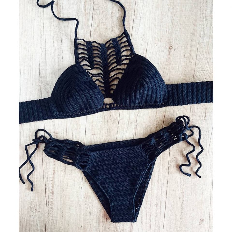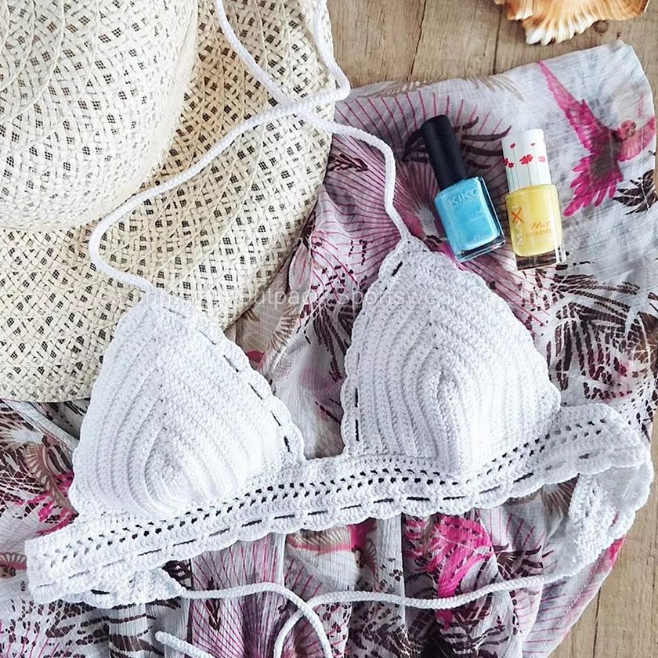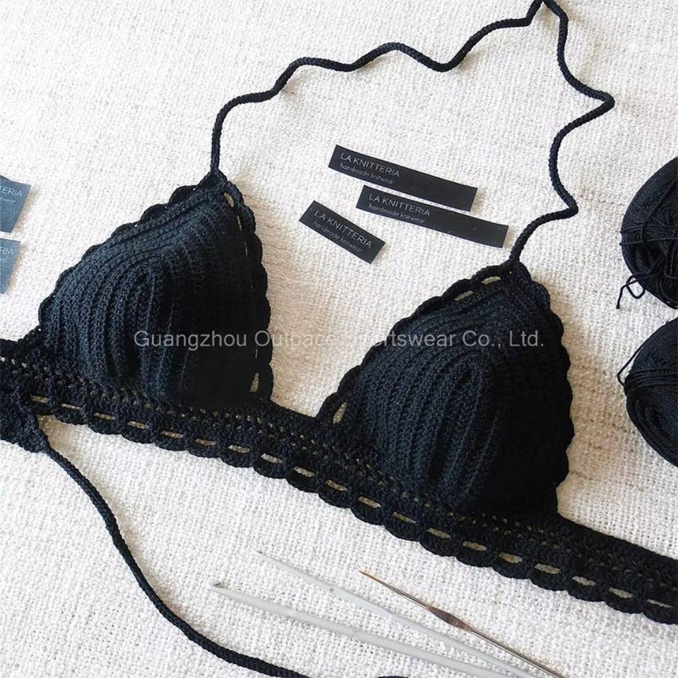 ชุดบิกินี่โครเชต์ทำมือ 2 ชิ้น ผ้าไนลอนตาข่ายแบบ OEM สั่งทำได้ ชุดว่ายน้ำเซ็กซี่สำหรับผู้หญิง ประดับด้วยคริสตัล ชุดบิกินี่โครเชต์ทำมือ