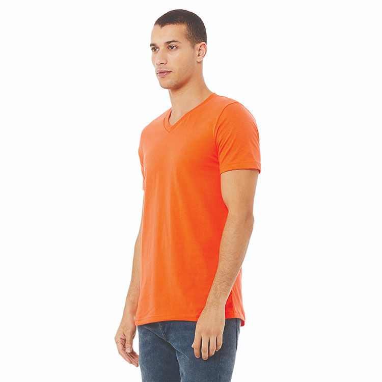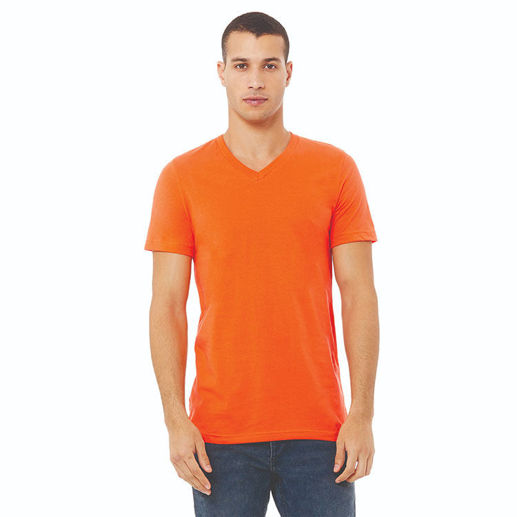 เสื้อยืดคอวีทรงสุภาพแบบยูนิเซ็กซ์ ODM สีส้มสั่งทำพิเศษ ผ้าทวิลล์อย่างดี 100% โพลีเอสเตอร์ กันยับ น้ำหนัก 4.2 ออนซ์ 32 เส้นด้ายเดี่ยว