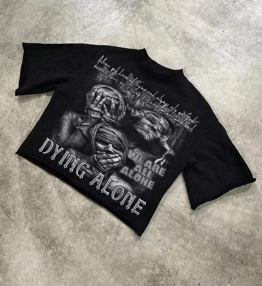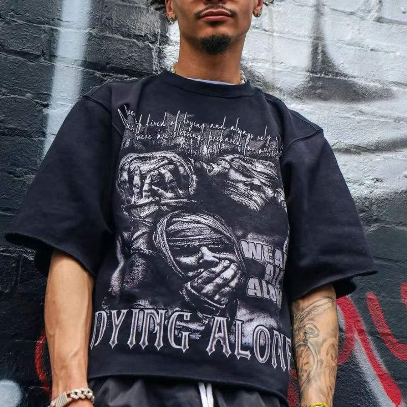 เสื้อยืดสตรีทแวร์ผู้ชายผ้าคอตตอนหนาน้ำหนักมาก พิมพ์ลาย DTG แบบทำสีซีดสไตล์วินเทจ ขนาดใหญ่พิเศษ ผลิตตามสั่ง OEM