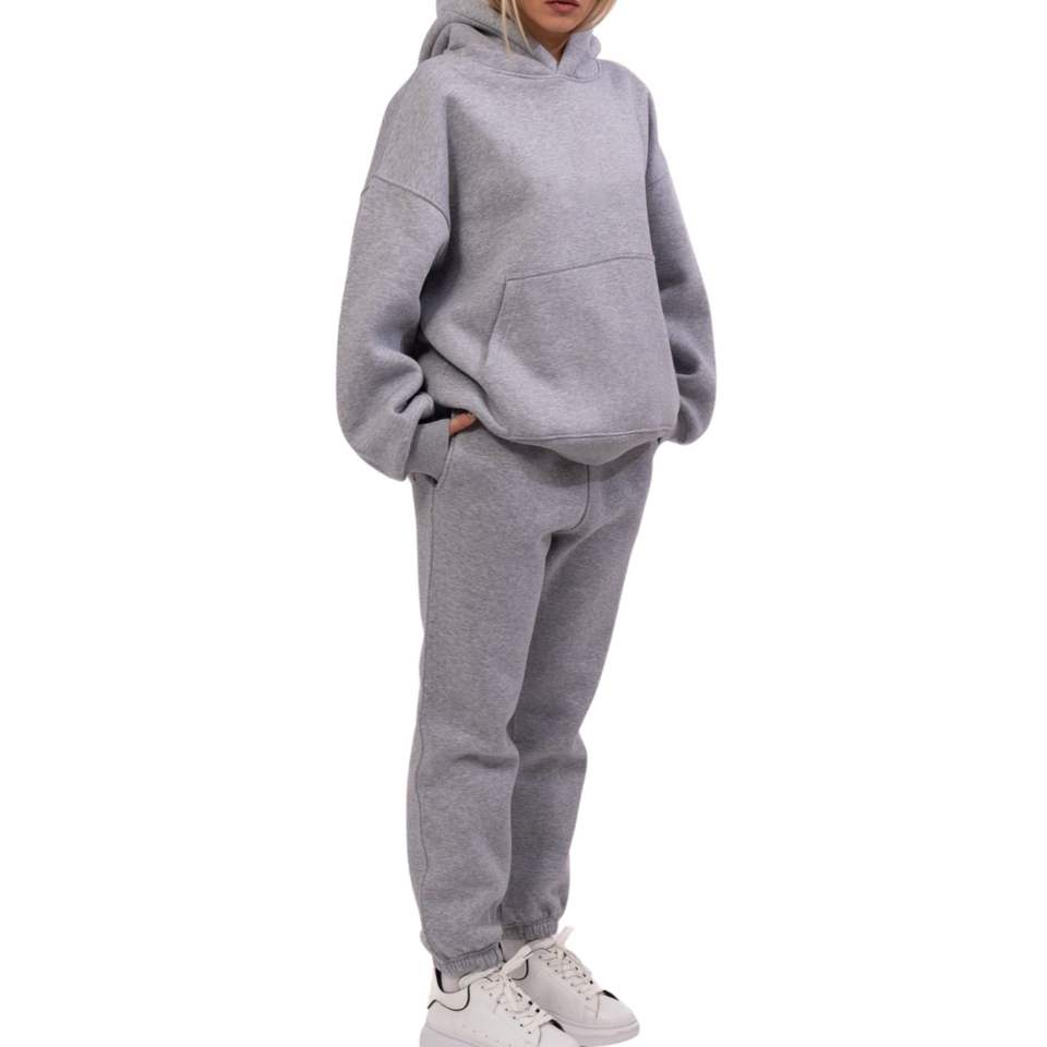 ชุดฮู้ดดี้และกางเกงวอร์มแบบสั่งทำพิเศษ OEM ไซส์ใหญ่ ทรงหลวม สไตล์สตรีทแวร์ ชุดกีฬาไม่มีซิป ผู้ผลิตชุดกีฬา
