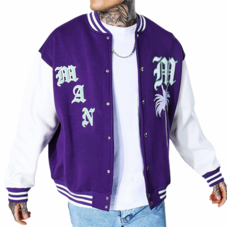 เสื้อแจ็กเก็ตบอมเบอร์ทีมเบสบอลเลตเทอร์แมนงานปักตามสั่งสำหรับผู้ชายวิทยาลัย