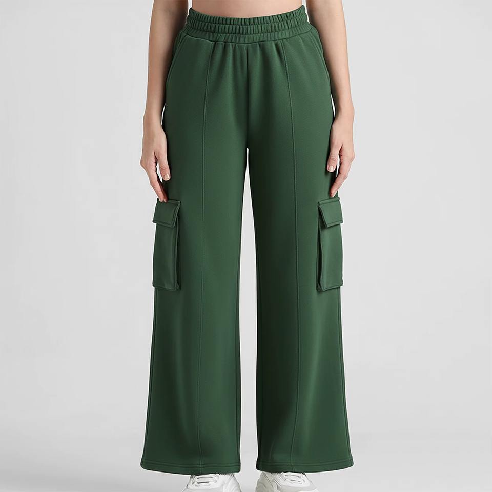 กางเกงจ็อกเกอร์ทรงบานผ้าฝ้ายลำลองสไตล์ตะวันตกสำหรับผู้หญิง แต่งลายปะติดแบบ OEM พร้อมกระเป๋าและเชือกผูกเอวกลาง
