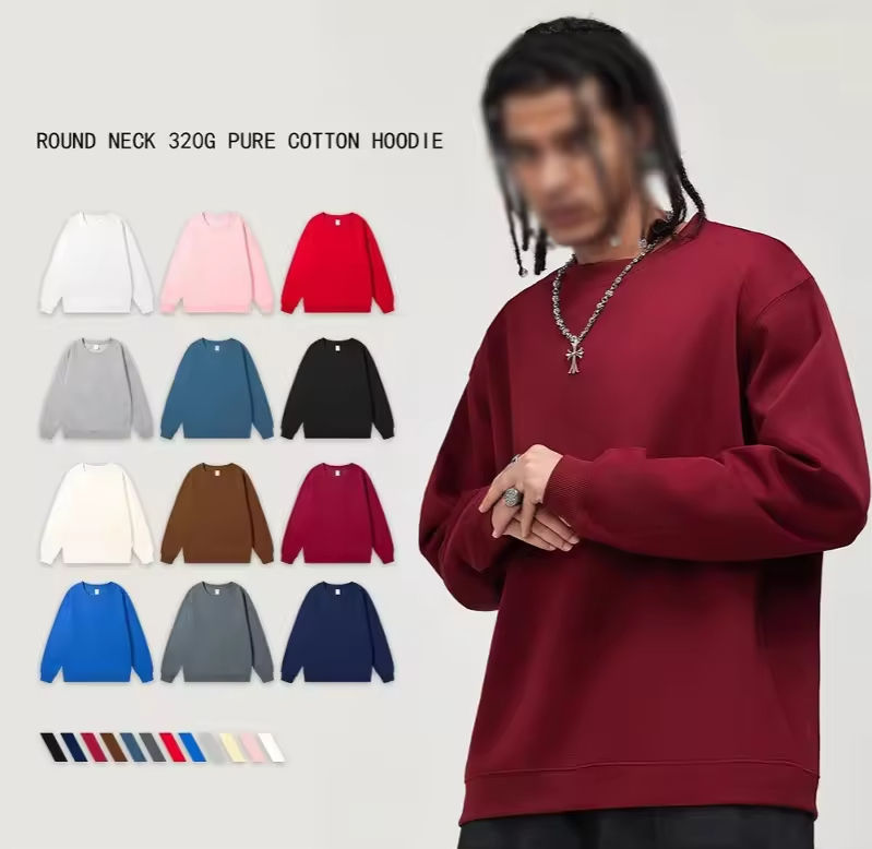 เสื้อสเวตเชิ้ตคอกลมแบบเรียบง่าย สไตล์ลำลอง ผลิตตามสั่ง (OEM) ผ้าคอตตอนผสมโพลีเอสเตอร์ ไซส์ใหญ่ ผ้าเฟรนช์เทอร์รี่ แบบสวมหัว สีพื้น