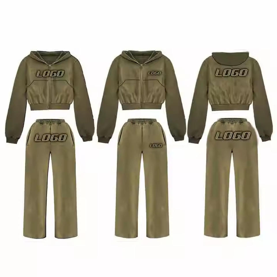 ชุดวอร์มสำหรับผู้หญิงชุดวอร์มกางเกงครอปแบบมีฮู้ดและสแต็ก