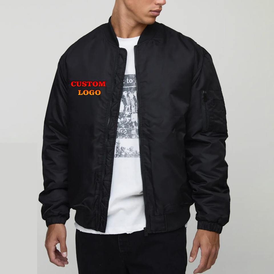 แจ็คเก็ตวาร์ซิตี้ผ้าซาตินกันลมแบบเรียบสำหรับผู้ชาย ผลิตตามสั่ง (OEM) พร้อมโลโก้แบบกำหนดเอง ชุดยูนิฟอร์มเบสบอลแบบเรียบสำหรับวิทยาลัย แจ็คเก็ตฤดูหนาวแบบยูนิเซ็กซ์สีพื้น