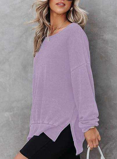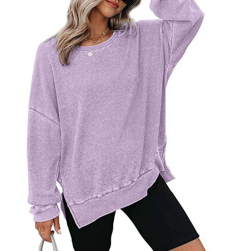เสื้อสเวตเชิ้ตคอกลมทรงโอเวอร์ไซส์ ผ้าวาฟเฟิล 100% ผ้าฝ้าย พิมพ์ลายตามสั่ง OEM แขนยาว ผ่าข้าง ด้านหน้า สไตล์ลำลอง สำหรับผู้หญิง