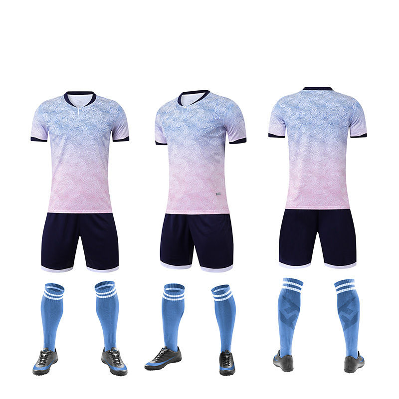 ชุดยูนิฟอร์มฟุตบอลแขนสั้นสำหรับฤดูหนาว พิมพ์ลายตามสั่ง OEM ผลิตจากโพลีเอสเตอร์ 100% ระบายอากาศได้ดี แห้งเร็ว คุณภาพดีเยี่ยม
