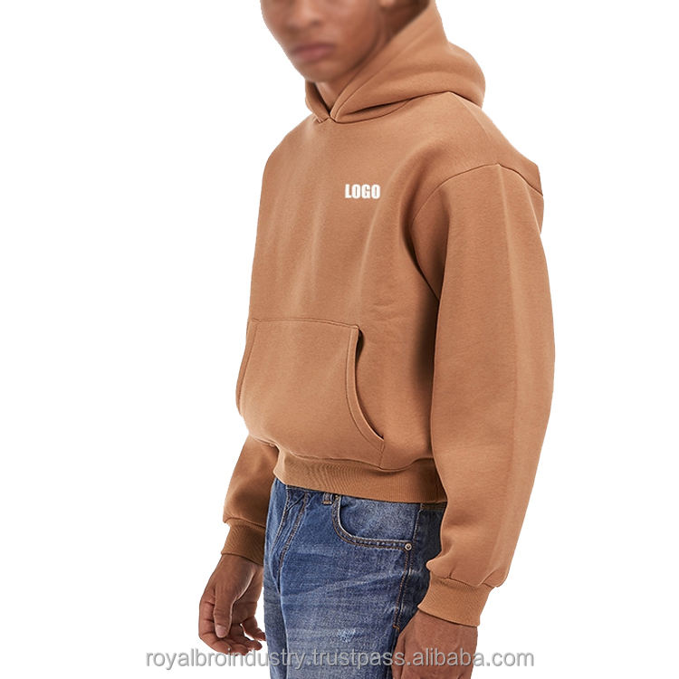 OEM Custom Pullover Hoodie for Men 100% Cotton 400-500 Gsm Heavyweight Oversized Cropped Boxy Fit Digital Winter Sweatshirt