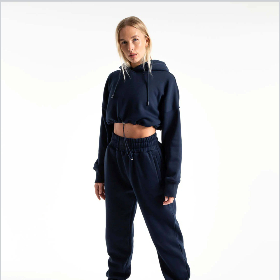 เสื้อครอปไม่มีฮู้ดแบบสวมหัวของผู้หญิงเสื้อครอปแขนยาวและโลโก้ด้านหน้าสำหรับออกกำลังกายแบบลำลองเสื้อครอปสำหรับฤดูหนาวออกแบบได้ตามต้องการ