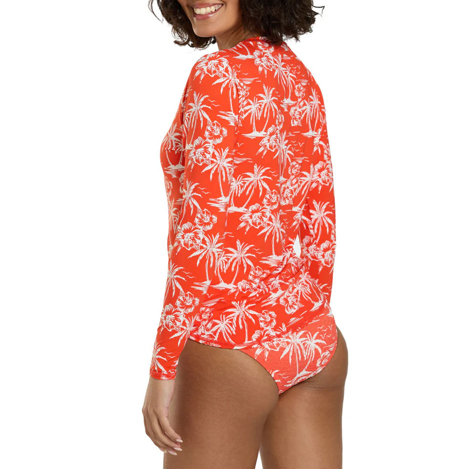 ชุดป้องกันผื่นคันสำหรับผู้หญิงเสื้อใส่เล่นยิมชุดป้องกันผื่นพิมพ์ลายซับลิเมชันงาน OEM ออกแบบได้ตามต้องการ