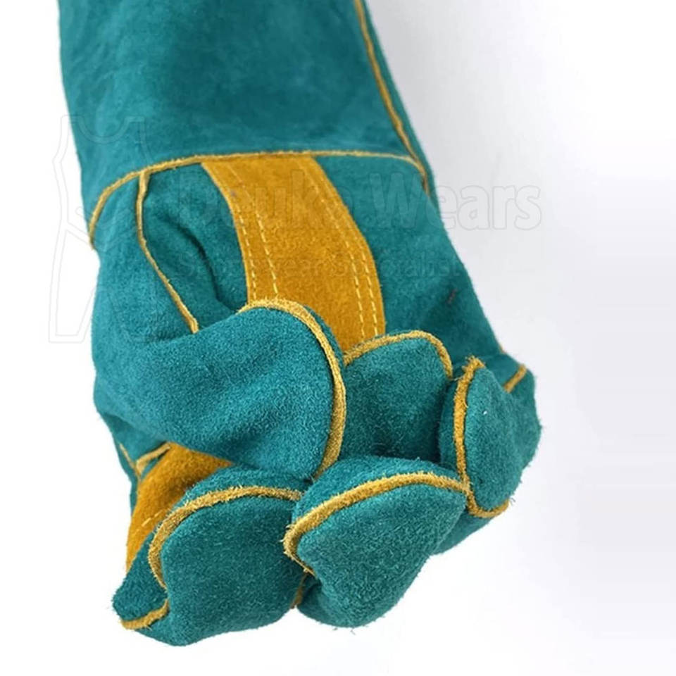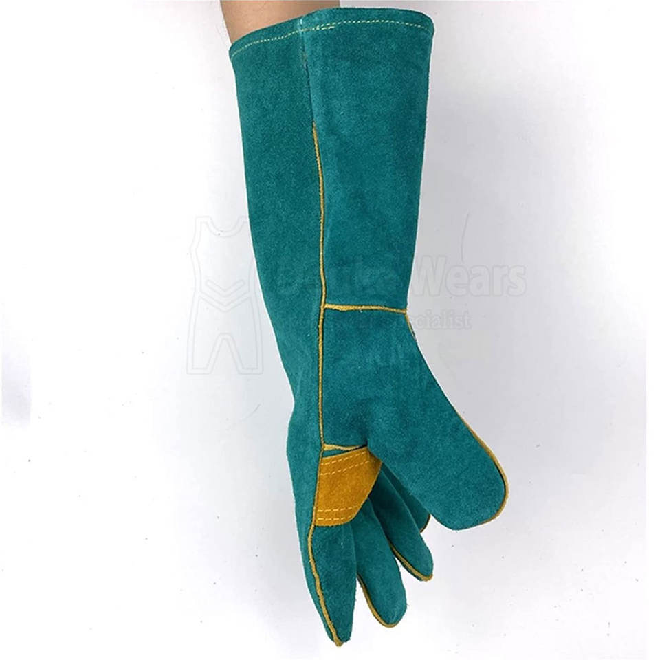 ถุงมือหนังแบบกำหนดขนาดเองสำหรับงานหนัก วัสดุหนังแท้ ความยาวพิเศษ สวมใส่สบาย เหมาะสำหรับงานเชื่อมในอุตสาหกรรม