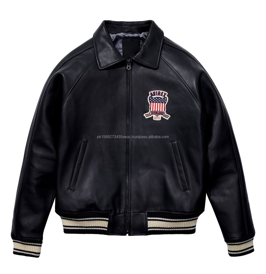 ผู้ผลิตแจ็คเก็ตหนังบอมเบอร์แบบกำหนดขนาดเอง OEM แจ็คเก็ตหนัง Avirex สำหรับผู้ชาย ขายดี | หนังวัวพรีเมียม | หลายสี