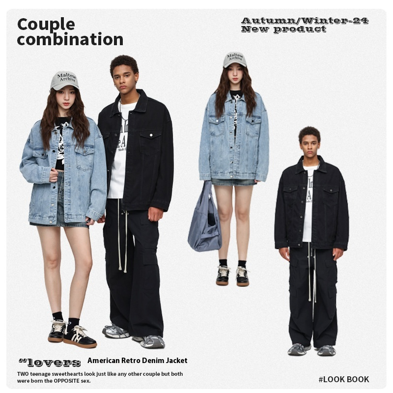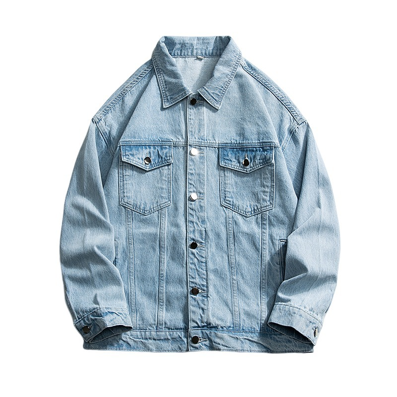 แจ็คเก็ตยีนส์ผู้ชายทรงโอเวอร์ไซส์สไตล์เรโทรติดกระดุมแถวเดียวแบบสปริงใหม่สั่งทำพิเศษจากโรงงาน (OEM)
