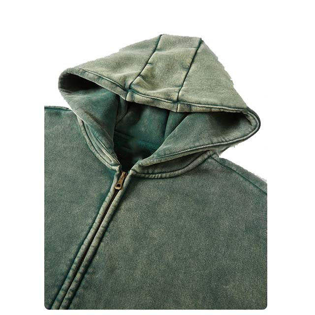 เสื้อฮู้ดดี้ผู้ชายทรงบ็อกซี่ แขนเสื้อแบบดรอปโชลเดอร์ ผ้าเฟรนช์เทอร์รี่ ตัดเย็บแบบครอป ซิปหน้า ประดับหมุดและคริสตัล น้ำหนักมาก สไตล์สตรีทแวร์ รับผลิตตามแบบ (OEM)