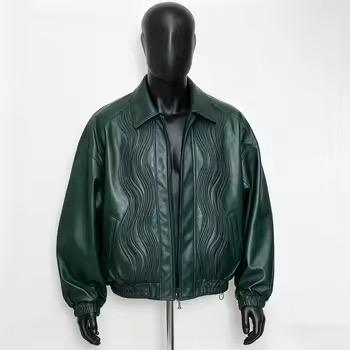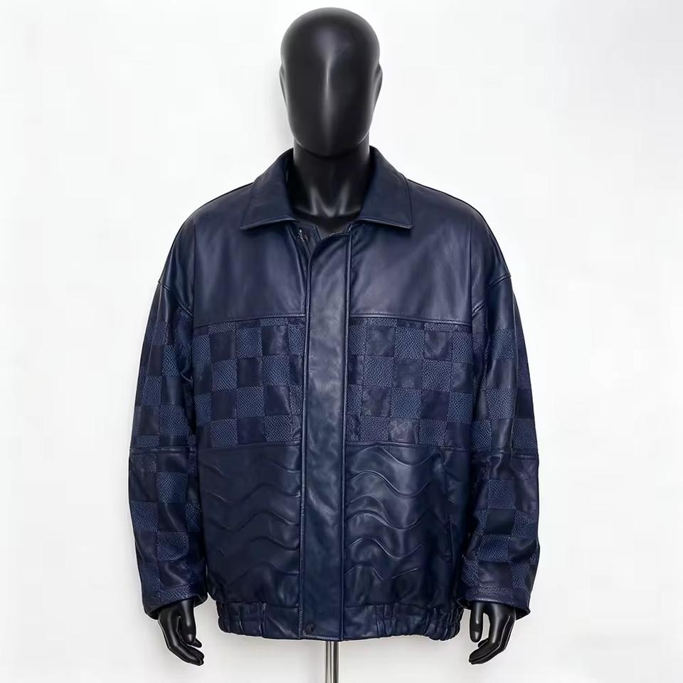 แจ็คเก็ตหนังแท้สไตล์วินเทจสำหรับผู้ชาย รุ่นสั่งทำพิเศษ (OEM) ตกแต่งลายปั๊มนูน ลุคซีดจางแบบดิสเทรส กันน้ำ ระบายอากาศ กันลม พร้อมปกเสื้อและซิป