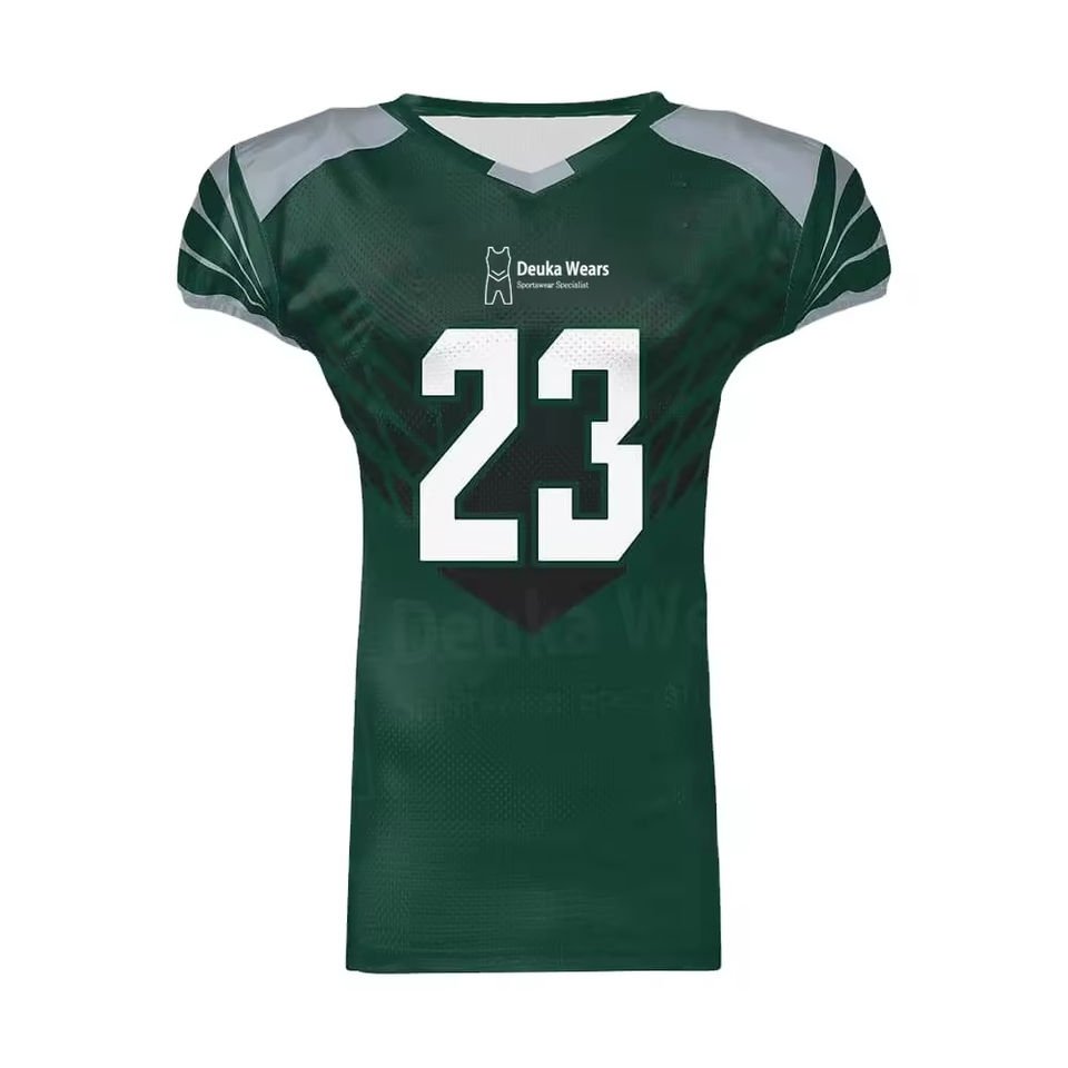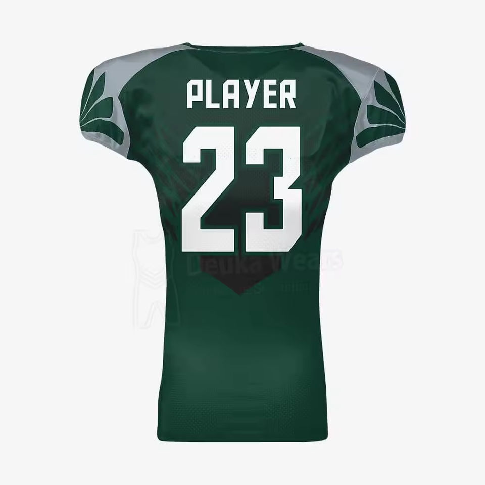 เสื้ออเมริกันฟุตบอลแบบสั่งทำพิเศษ พิมพ์ลายแบบซับลิเมชั่น ผลิตจากผ้าโพลีเอสเตอร์และสแปนเด็กซ์ พร้อมชื่อและหมายเลขตามสั่ง