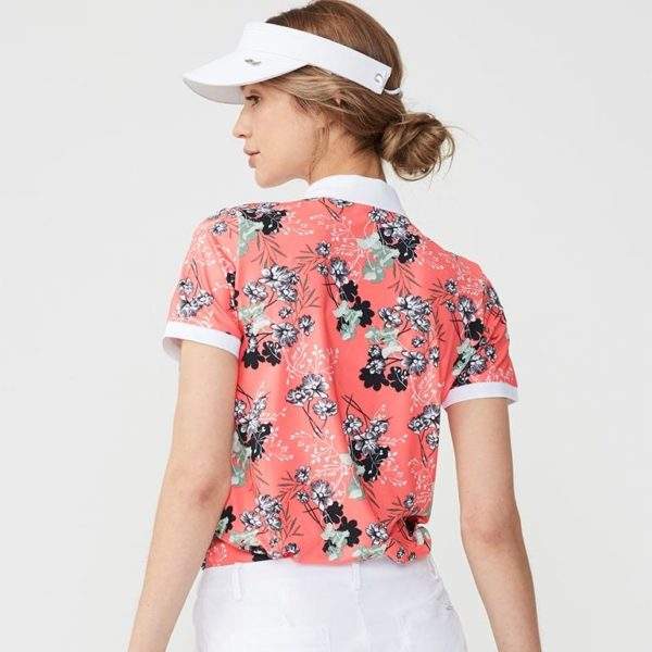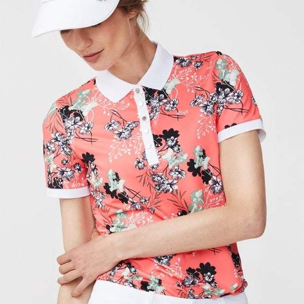 เสื้อโปโลสำหรับผู้หญิงเสื้อกอล์ฟพิมพ์ลายซับลิเมชันงาน OEM ตามสั่งยี่ห้อ