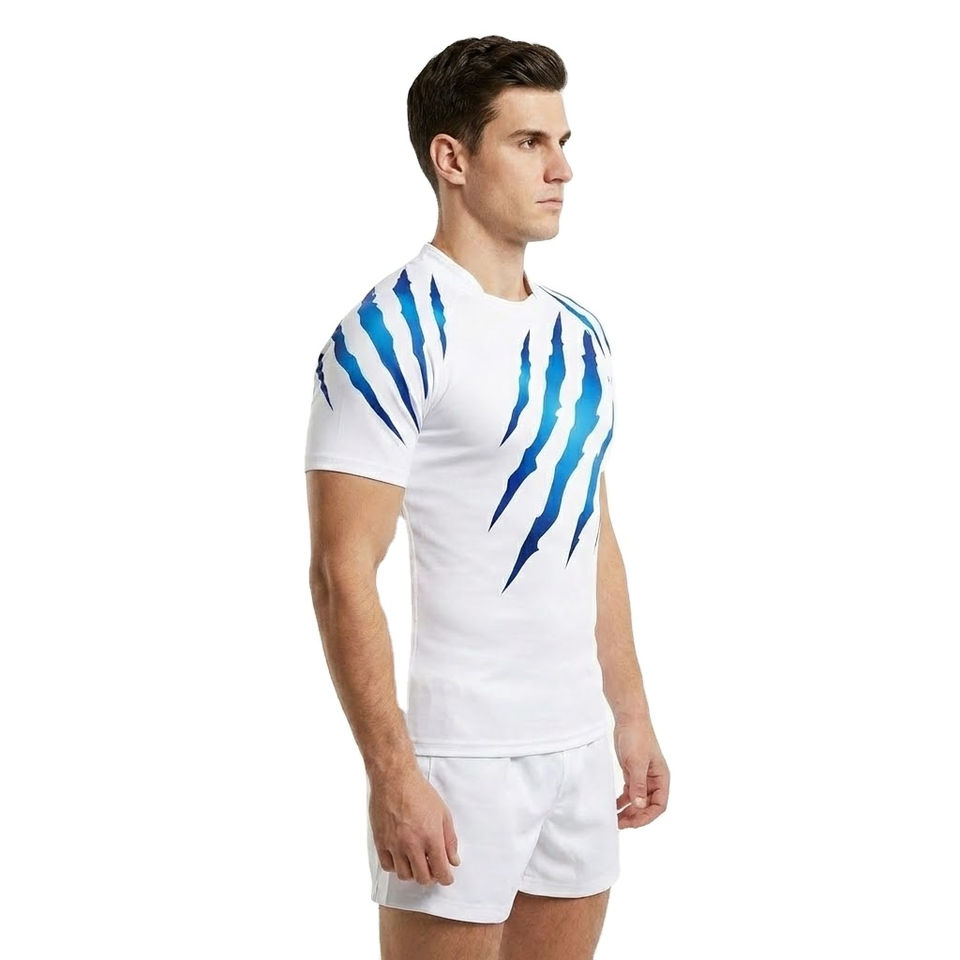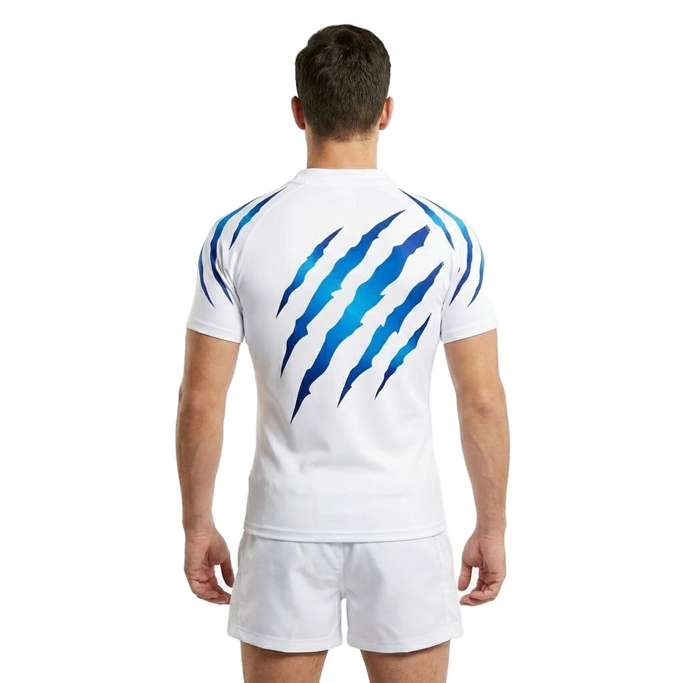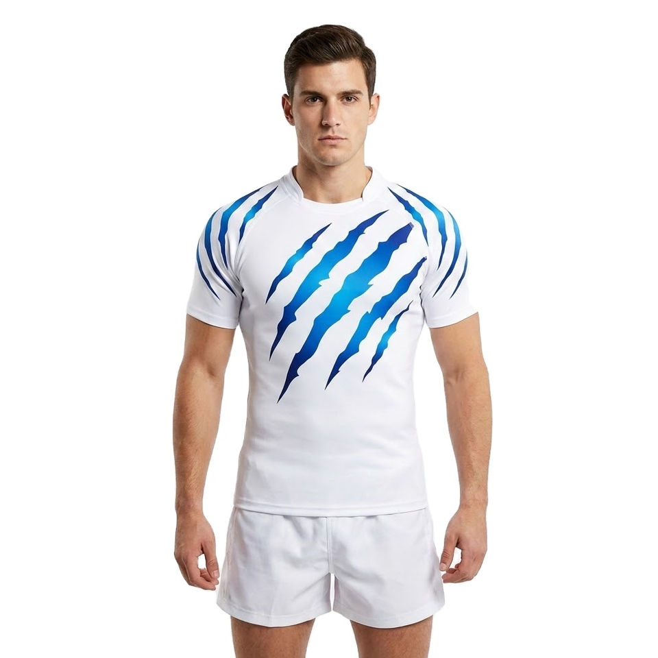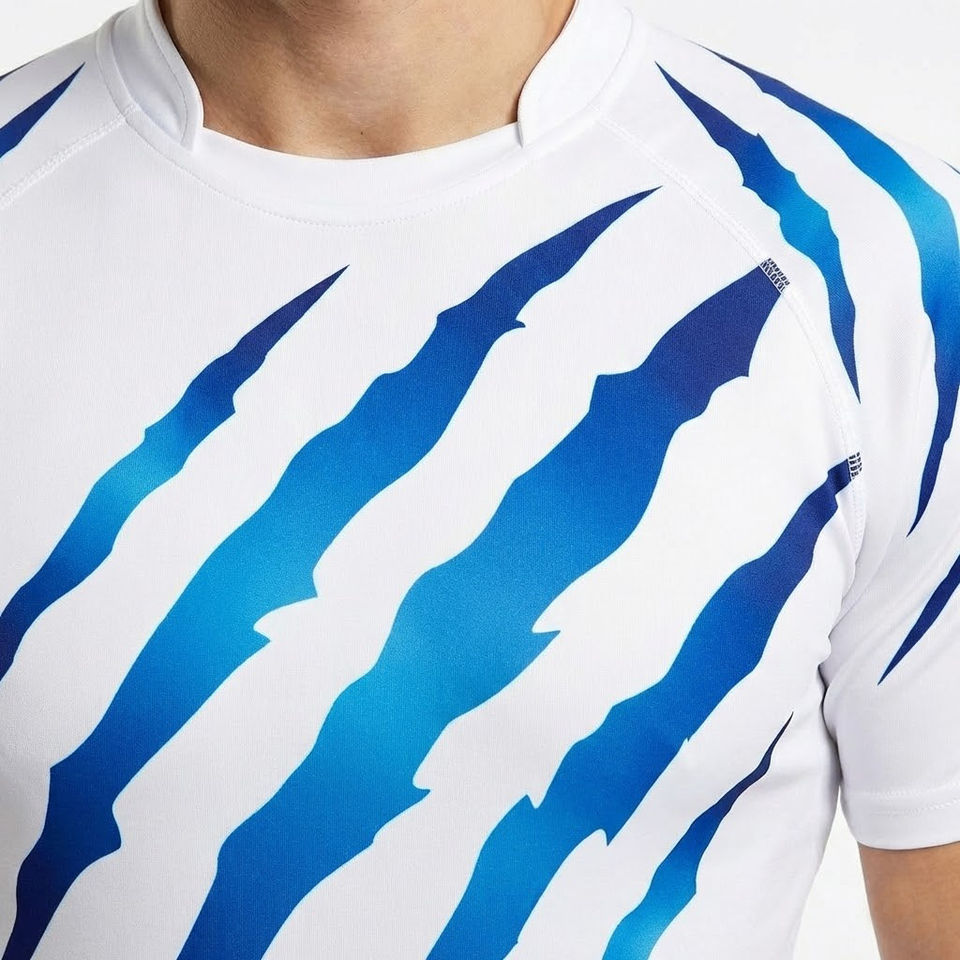 ชุดฟุตบอลแบบซับลิเมชั่นสั่งทำ OEM สำหรับผู้ชาย ระบายอากาศได้ดี ชุดทีมฟุตบอล ดีไซน์ลายกรงเล็บ ผู้ผลิตชุดกีฬา พิมพ์โลโก้