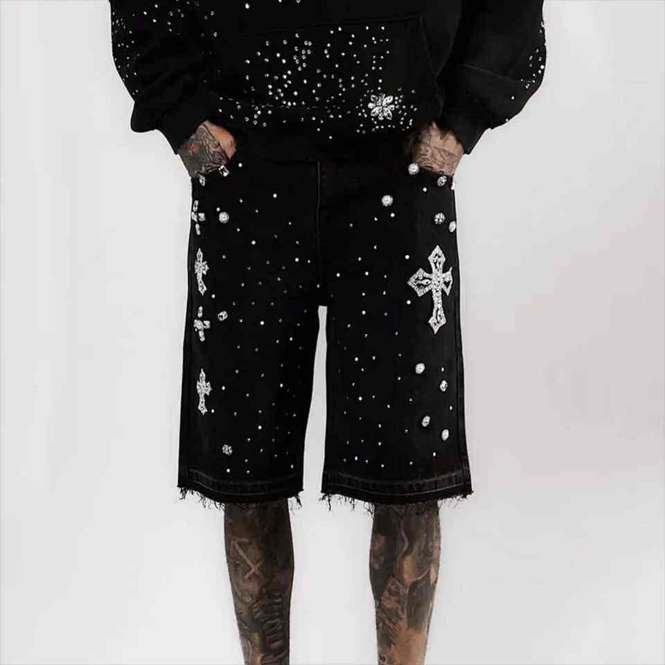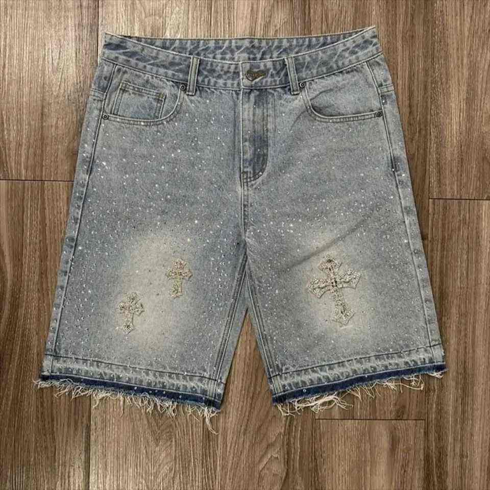 กางเกงคาร์โก้เดนิมวินเทจผู้ชายแบบสั่งทำ OEM สำหรับฤดูร้อน ประดับด้วยคริสตัล เป็นมิตรกับสิ่งแวดล้อม แห้งเร็ว และระบายอากาศได้ดี