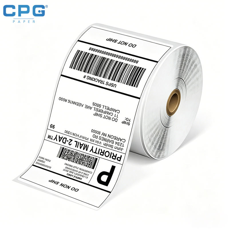 สติกเกอร์บาร์โค้ดแบบพิมพ์ความร้อนโดยตรง OEM ขนาด 40x30 มม. 4x6 นิ้ว สำหรับการจัดส่งด่วนทางโลจิสติกส์