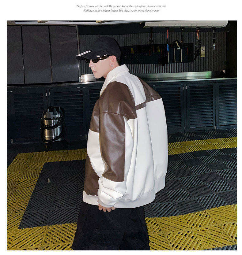 แจ็คเก็ตหนังเทียม PU แบบยูนิเซ็กซ์ สั่งทำได้ตามแบบ OEM สีตัดกันด้านหน้า สไตล์วินเทจสำหรับขี่มอเตอร์ไซค์ กันน้ำและสามารถกลับด้านได้