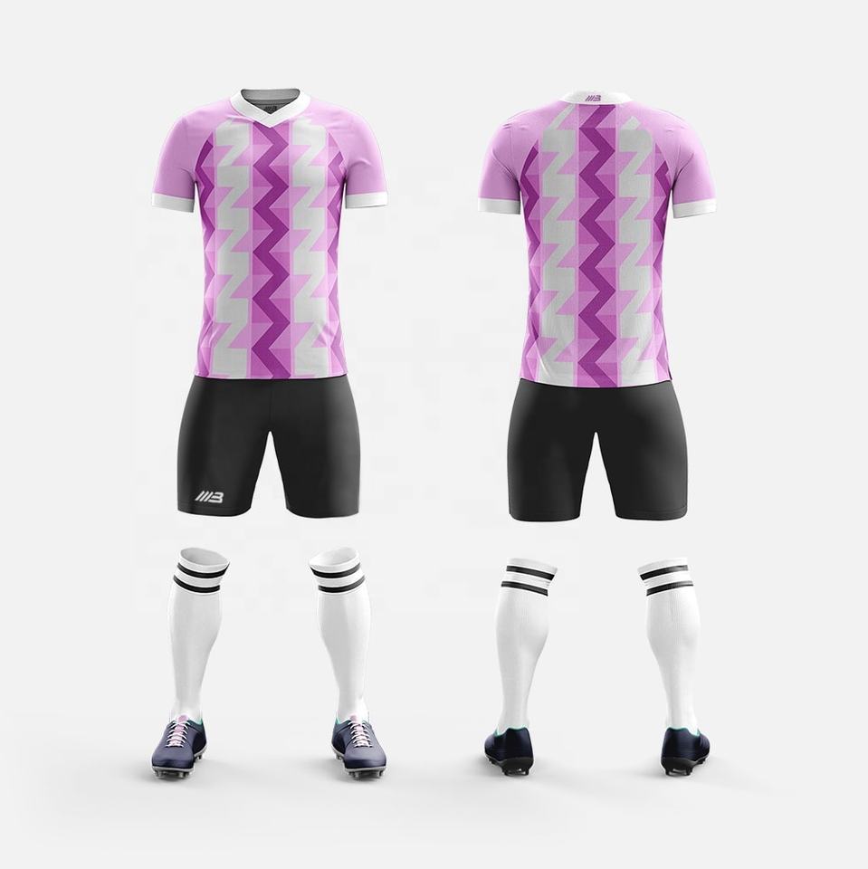 ชุดเสื้อฟุตบอลแบบกำหนดเองสำหรับทีม OEM ระบายอากาศได้ดี น้ำหนักเบา แห้งเร็ว ไม่หดตัว คอวี แขนครึ่งตัว พร้อมสกรีนชื่อทีมได้