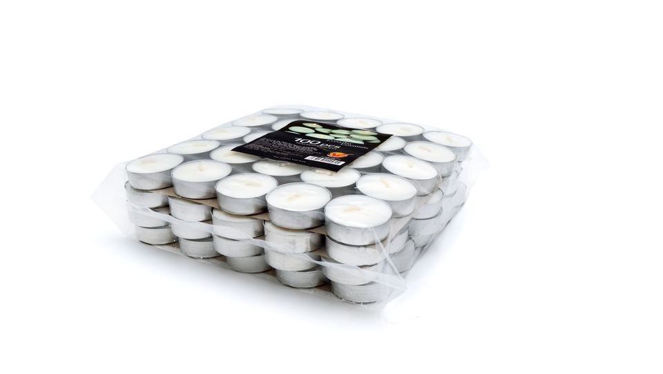 Packaging Description:100 Pressed Tealight Candles in Alu Cups / Bagged with Label