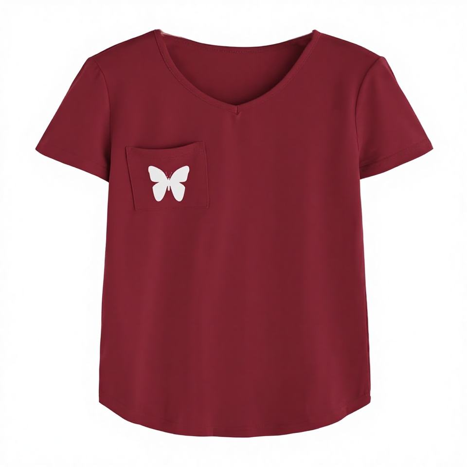 เสื้อยืดคอวีสำหรับผู้หญิงผ้าผสมไตรดีไซน์ขนนกขนาดใหญ่พิเศษเป็นมิตรต่อสิ่งแวดล้อมในอินเดีย