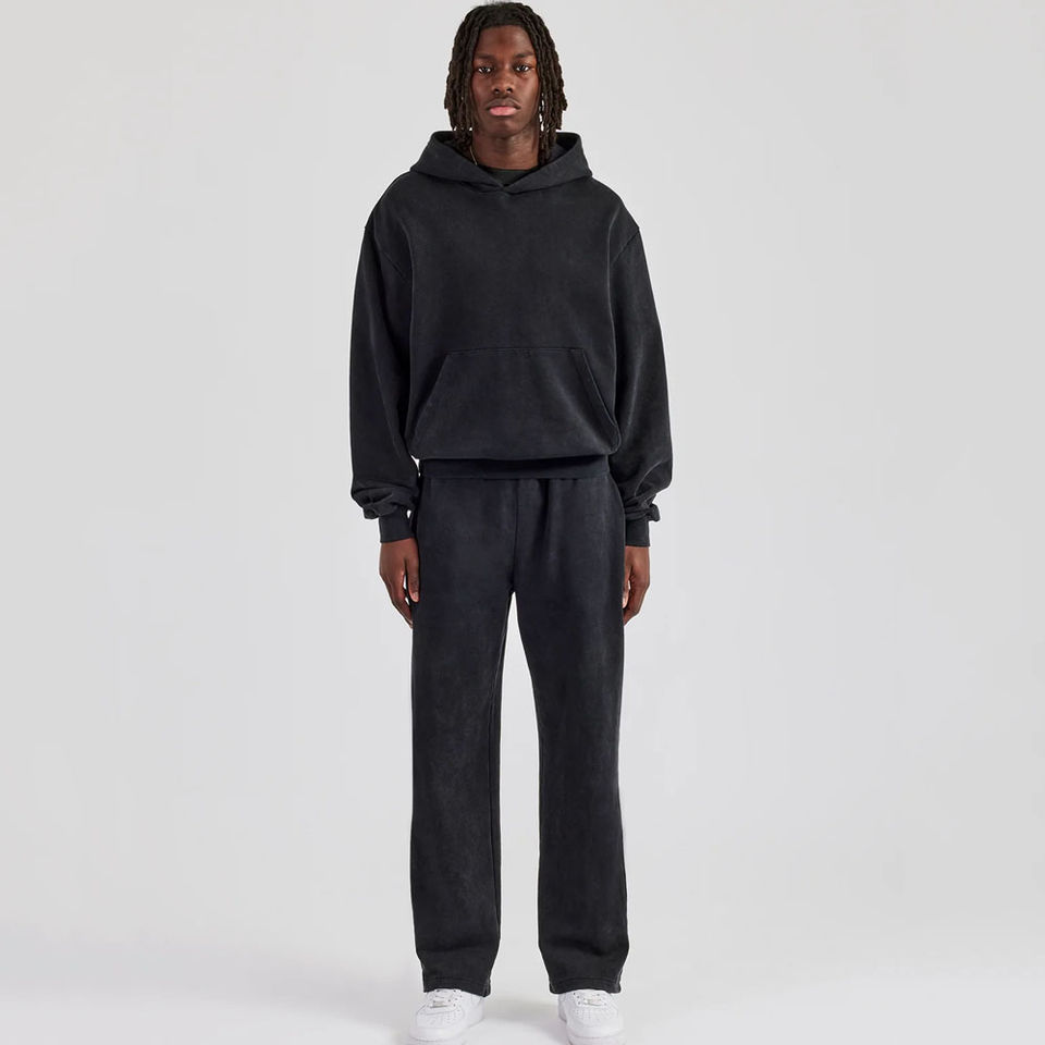 ชุดวิ่งออกกำลังกายแนววินเทจสำหรับผู้ชายชุดวอร์มซักกรดสีดำชุดวอร์มมีฮู้ดและขาตรงขาบานชุดวอร์มสำหรับผู้ชาย