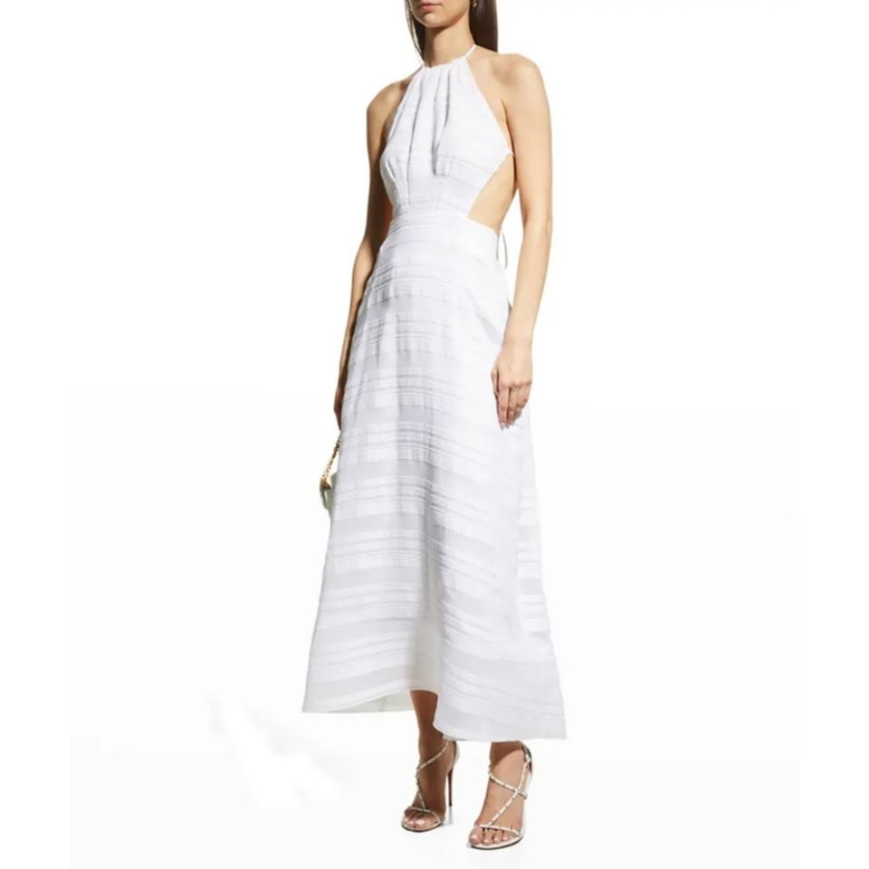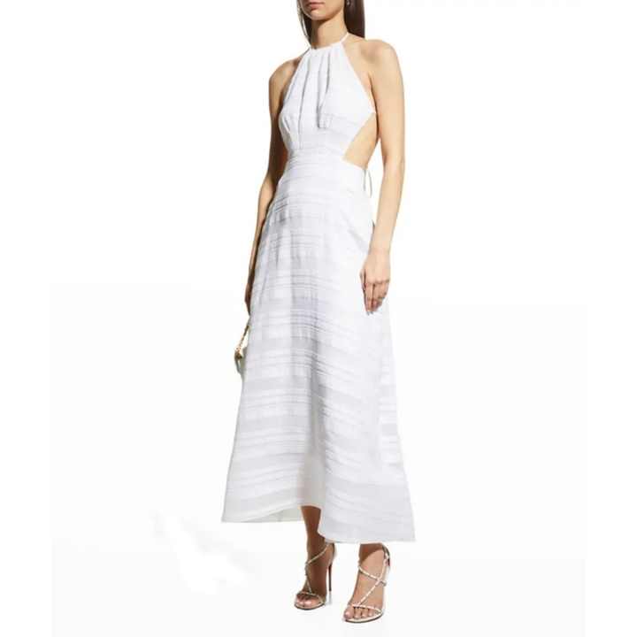 OEM Custom White Linen Maxi Dress for Women Sexy Sleeveless Summer Beach Dress with Bohemian Elegance Woven Button Decoration