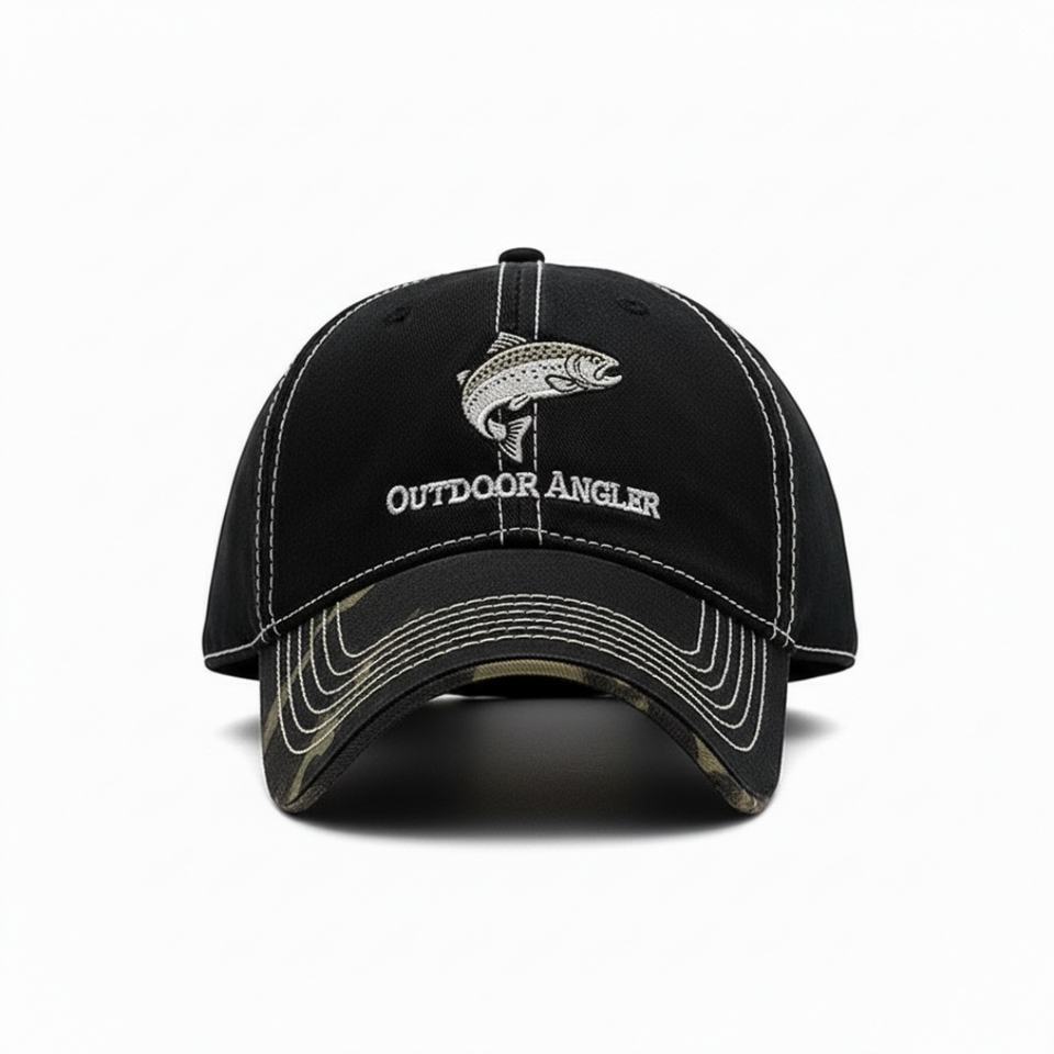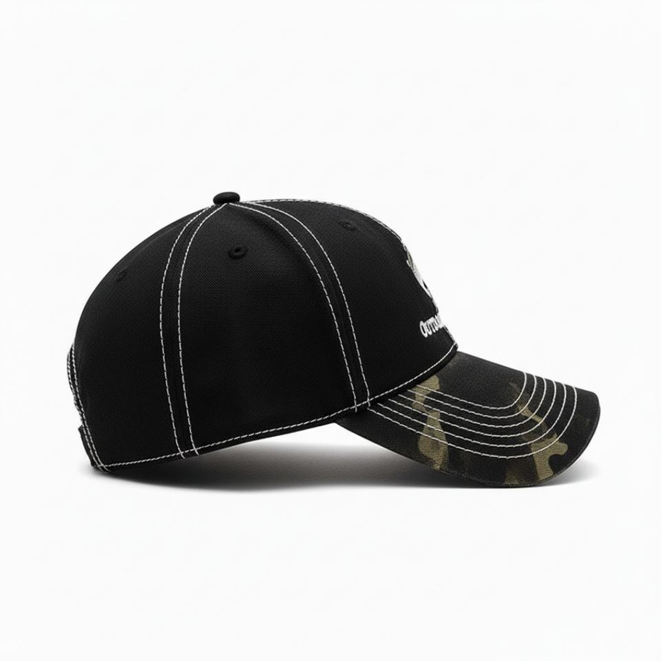 หมวกเบสบอลผ้าฝ้าย 6 แผง ไม่มีโครง ปักโลโก้ตามสั่ง ขายส่งแบบ OEM สไตล์วินเทจ ขอบลายพราง ปรับขนาดได้
