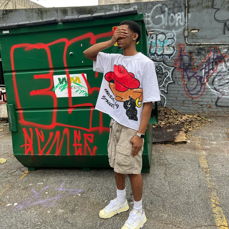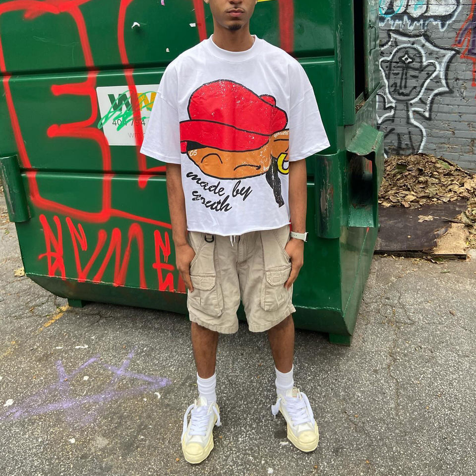 เสื้อยืดโอเวอร์ไซส์สไตล์วินเทจสกรีนลายแบบใหม่ ผลิตตามสั่งขายส่ง คอริบบิ้น ผ้าปะติดปะต่อ ล้างสีแบบแอซิดวอช