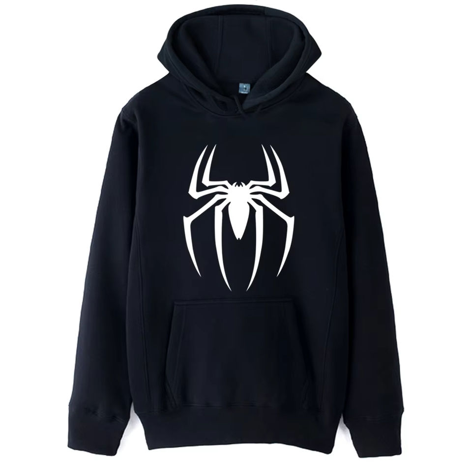 เสื้อฮู้ดพิมพ์ลายแมงมุมฮาโลวีนฤดูหนาวแบบกำหนดเองสำหรับ OEM ผลิตจากผ้าฝ้าย 100% น้ำหนัก 350gsm เป็นมิตรกับสิ่งแวดล้อม ประดับด้วยคริสตัล
