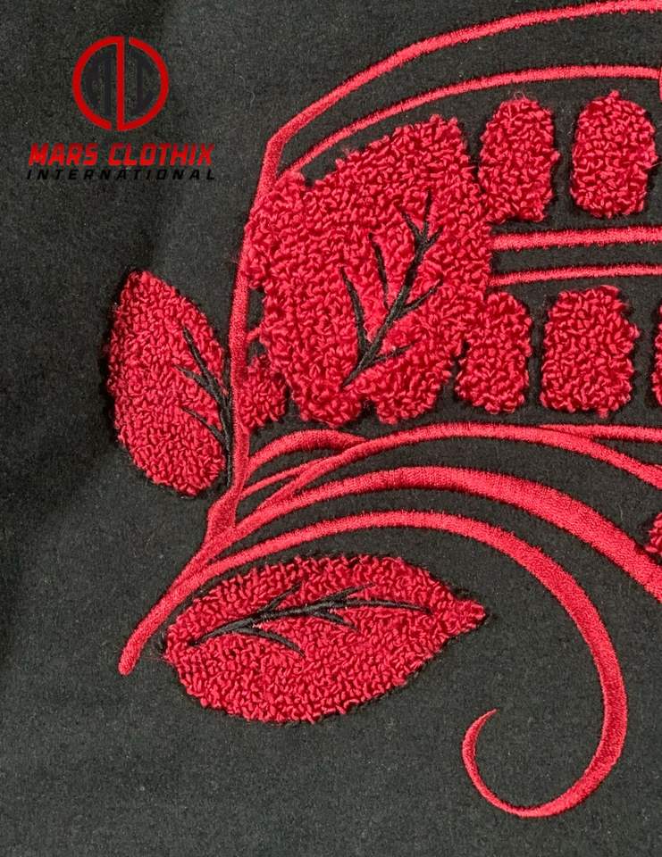 แจ็คเก็ตวาร์ซิตี้ถักนิตติ้งสำหรับผู้ชาย แบบ OEM สั่งทำพิเศษสำหรับฤดูหนาว สไตล์สตรีทแวร์สุดหรู ตกแต่งด้วยงานปักไหมเชนีล ขนแกะ หนัง และกระดุม